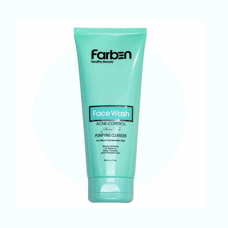 ژل شستشوی صورت فاربن مناسب پوستهای چرب، مختلط و مستعد آکنه کنترل میزان چربی پوست، پاکسازی منافذ باز و ضدعفونی کردن پوست صورت را با کمک عصاره چای سبز انجام میدهد. با لایه برداری خفیف خود از تجمع چربی و سلولهای مرده پوست جلوگیری میکند. فاقد پارابن، فتالات و صابون بوده تا پوست خشک نشود و نرم و لطیف باشد.